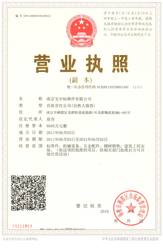 南京寶宇標(biāo)準(zhǔn)件有限公司,專業(yè)標(biāo)準(zhǔn)件,真正廠家直銷,成立于1992年,目前占地面積5萬平方米,建筑面積2.6萬平方米,現(xiàn)有熱打車間.冷墩車間、搓絲車間,包裝車間、數(shù)控車間、精加工車間、獨立實驗室,主要生產(chǎn)設(shè)備200多臺。公司目前擁有約150名員工,其中高級工程師4名,工程師9名,技術(shù)人員30名。公司專業(yè)生產(chǎn)和研發(fā)碳鋼、不銹鋼、銅 標(biāo)準(zhǔn)件、緊固件和非標(biāo)準(zhǔn)件,產(chǎn)品種類有:螺栓、螺釘、螺絲、螺母、平墊、彈墊、螺柱、組合件、非標(biāo)異型件及精密零件,等多種列。 碳鋼,等級有:4.8級 6.8級 8.8級 10.9級 12.9級,不銹鋼,材質(zhì)有:201. 202 .304 .316. 316L.904 .904L 等等。 特別是各種小標(biāo)不銹鋼標(biāo)準(zhǔn)件產(chǎn)品,我公司采用大型進口機械設(shè)備加工,價格實惠,有現(xiàn)貨供應(yīng)。購買南京標(biāo)準(zhǔn)件,南京緊固件,南京螺絲,南京螺母